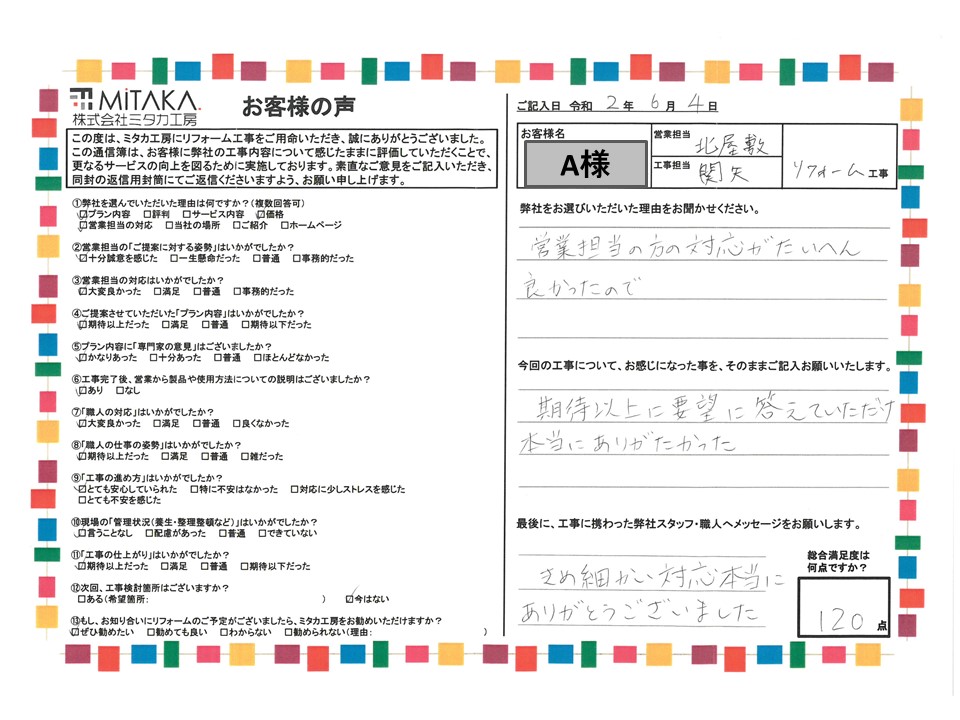 大変丁寧な仕事でとても感謝しております。