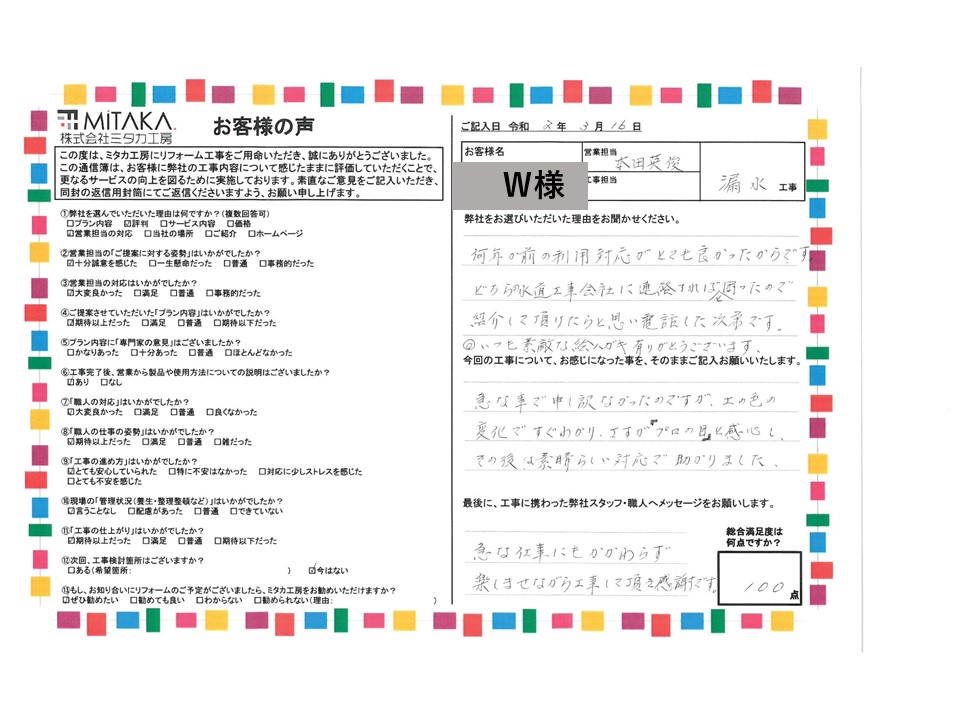 ミタカの社長さんはじめ、スタッフ、職人さん非常に良かったです。