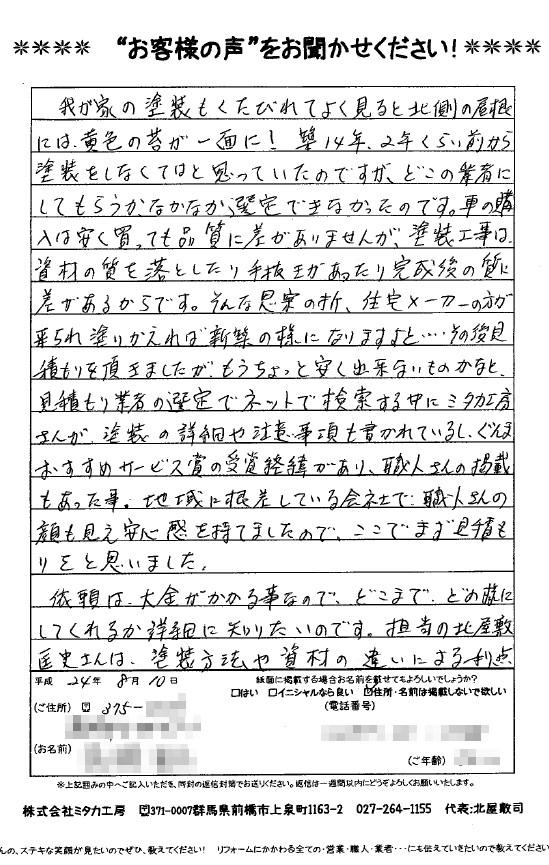 しっかり対応してくれるミタカ工房さんにお願いしてよかったと思いま...