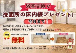 2月・3月は洗面所の床内装プレゼントキャンペーンを再度ご案内♪