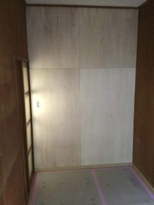 床はフローリングに仕上げて、板張りの壁と天井もクロスで仕上げていきます。