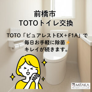 今回は、前橋市で実際に行った TOTOトイレ交換の施工事例(ピュアレストEX+アプリコットF1A) をご紹介します。