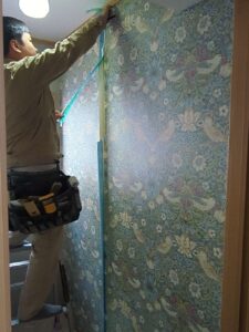 壁紙では高級なクロスで、金額を聞いたときもびっくりされていましたが、それでもこれにしたいという意向でモリスのクロスを貼らせて頂きました。